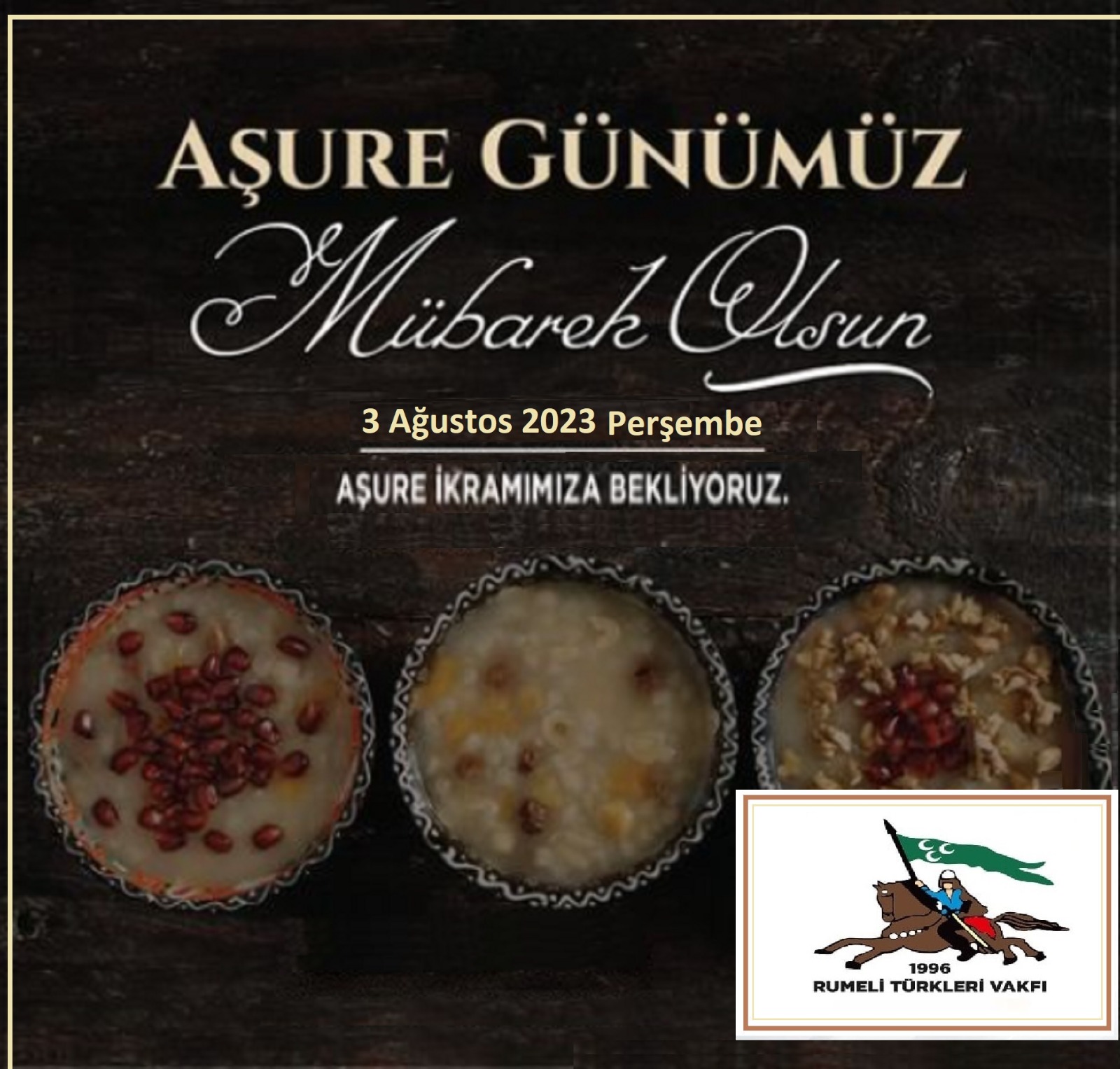 Muharrem Ayı Aşure Etkinliğimize Davet; Rumeli Türkleri Vakfı geleneksel “Aşure Günü Etkinlik Programı” 3 Ağustos 2023 Perşembe Günü Saat 17:30 da Rumeli Türkleri Vakfı Kültür Merkezi yerleşkesinde tüm Yönetim Kurulu ...