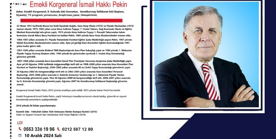 10 Aralık 2024 Salı Günü Saat 19:30 da, Hemşehrimiz Emekli Korgeneral İsmail Hakkı Pekin’i Rumeli Türkleri Vakıf Kültür Merkezinde ağırlıyoruz.